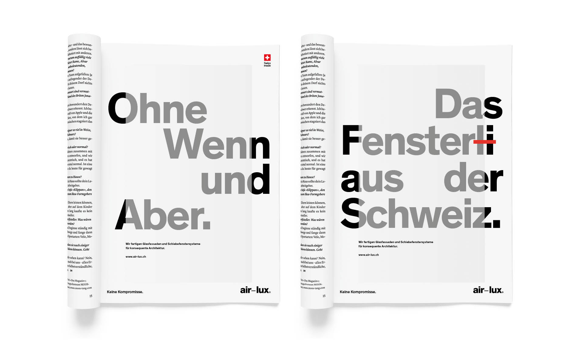 年份 2019 類別 B2B製造 服務 品牌策略 品牌設計 air-lux 產品傳遞品牌核心價值 瑞士建築建商Krapf AG於2004年研發推出air-lux技術系統,此大型落地玻璃的產品特點為可滑動式且具氣密窗的專利,並於瑞士恩格爾(Engelburg)進行製造,且使用企業的專用設備進行組裝。自2004年以來,在全球地區已安裝了4500扇的air-lux滑動窗。 瑞士建築建商Krapf AG於2004年研發推出air-lux技術系統,此大型落地玻璃的產品特點為可滑動式且具氣密窗的專利,並於瑞士恩格爾(Engelburg)進行製造,且使用企業的專用設備進行組裝。自2004年以來,在全球地區已安裝了4500扇的air-lux滑動窗。 Process普羅品牌協助制定air-lux的定位與識別,並且以創新和清晰的方式傳遞品牌價值,完善地應用於各個接觸點。 air-lux奠基於全新的品牌定位,簡約留白的識別設計在市場上令人耳目一新,展現與競爭對手的差異化與獨特性,並清晰地傳達重要的溝通訊息。在字體編排設計上,以材料的堅固性及滑動窗的水平垂直型態為概念,並運用透明圖層象徵玻璃窗的意涵展現於視覺上。 前往下一個專案 Bauwerk 設計健康生活空間
