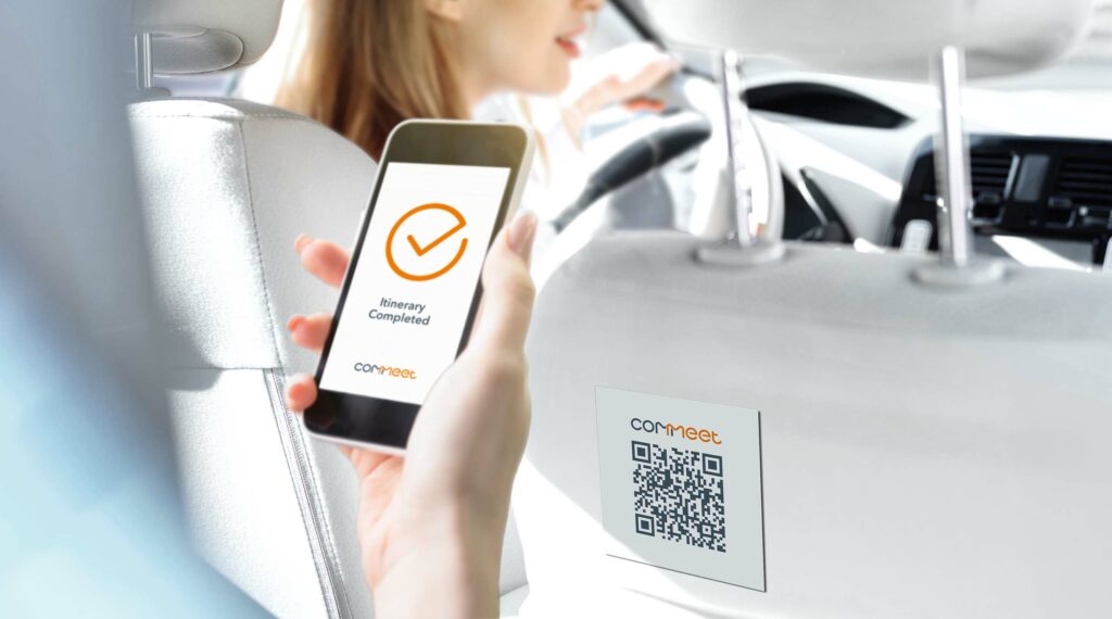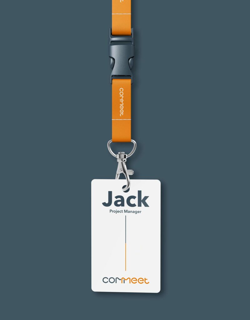 COMMEET 識別設計運用品牌名組成字 Come 與 Meet 的概念,串起商務旅行「會面」的核心需求。透過品牌識別的連結視覺表現,不僅表達出能快速透過一站式系統解決各種商務行程問題,同時也象徵旅程A到B點之間的連結性,提供⼈們最佳適配的旅程方案。