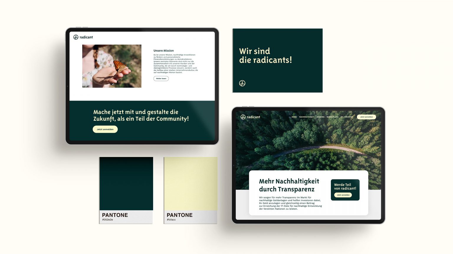 普羅在瑞士為一家新成立的永續數位銀行radicant做品牌策略,該銀行期望打造資訊的透明、多樣性和獨特性的形象。普羅運用圖像傳遞品牌精神,用防幅射的植物為企業識別,以其生長過程中長出的新芽會與舊根分開的生物特性,象徵傳承、永續意象,並以綠色、米色做為整體視覺搭配。以這類永續原生品牌來說,從開始的企業識別系統設計,到訊息傳達、各接觸點的視覺表現等每個溝通細節,都可以將永續意念考量其中,進而獲得彰顯。