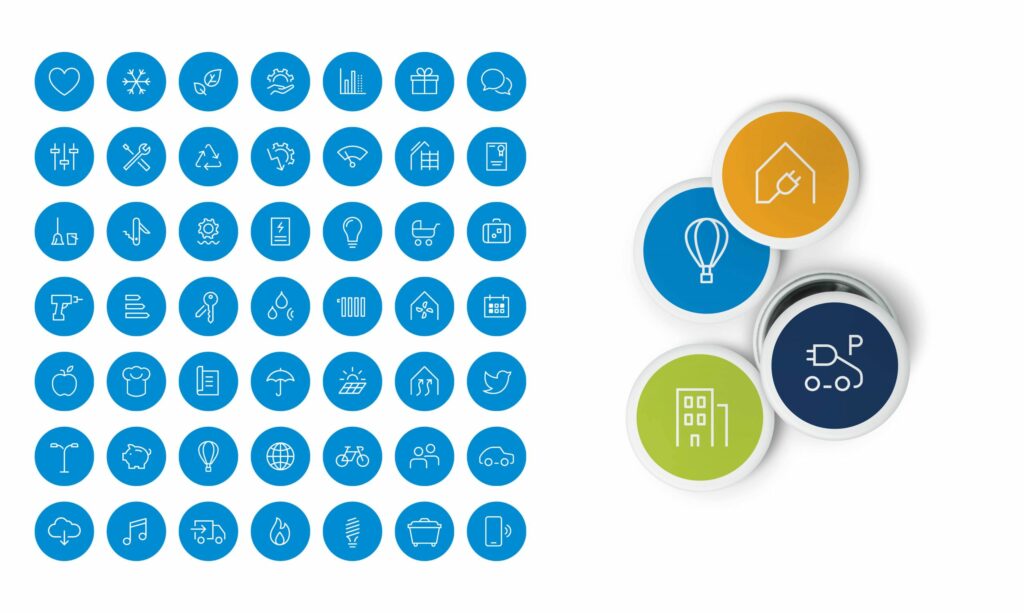 專案的另一個重點在於溝通和語言文字的使用:簡單俐落的大標題採用EKZ的經典藍色,加上清晰的敘述吸引目光。這個設計概念的目的是為了更簡明地解釋問題,同時更迅速傳達客群的獲益點。新圖標和插圖的發展也延伸自這個概念,超過140個圖標提供方向,並幫助EKZ用一個更簡明且具吸引力的方式傳達複雜的主題。
