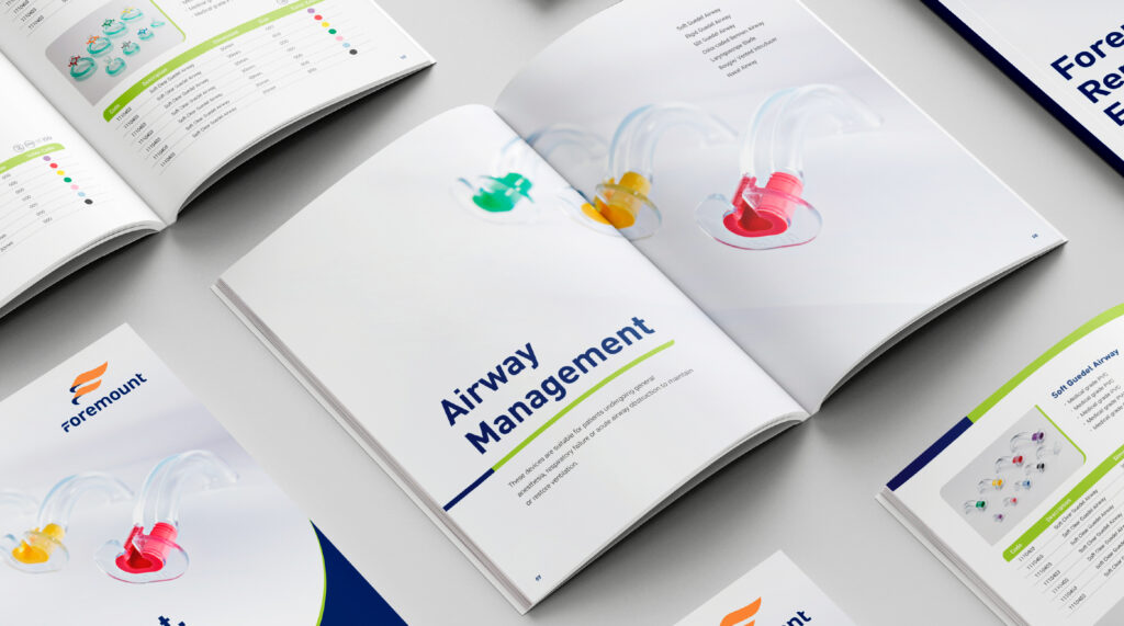 Foremount 的識別展現了在呼吸照護設備中不斷創新且持續向上的品牌精神。 除了以 F 作為商標的主要結構,透過翅膀揮動及氣流的意象,傳遞呼吸醫療產品的特性外,標誌也融入高山的意象,表現Foremount 持續精進且邁向頂峰的精神。 色彩上,延伸運用品牌原本的深藍色,表現出沈穩且值得信賴的特質,並結合溫暖的橘色創造品牌友善、溫潤、具生命力的形象,創造有別以往醫療產業內冷色調的風格。