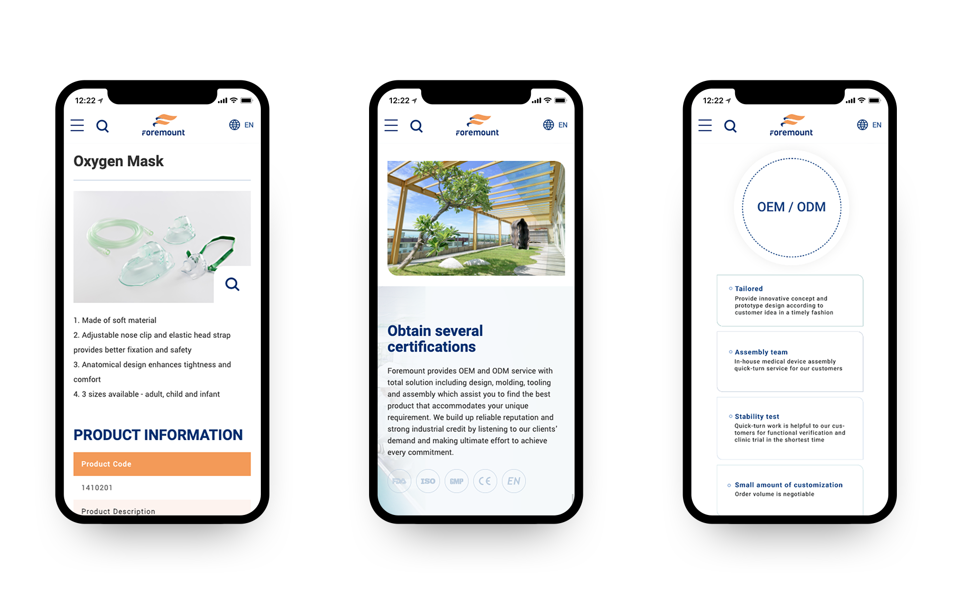 Foremount 遠貿自1996 年致力於醫療器材、嬰幼兒用品、各種塑膠成型及加壓硬模等產品,在開發製造及醫療出口領域擁有超過20多年的經歷,特別是液態矽膠、橡膠,提供客戶專業的呼吸及急救醫療相關產品OEM及ODM服務,其產品廣泛銷售到歐洲、美加、 澳洲、日本等地區。遠貿有專業及堅強的研發團隊,同時擁有流暢且高效率的生產線,加上在品質的堅持,產品皆通過嚴格的測試,達成客戶要求的不二信念。