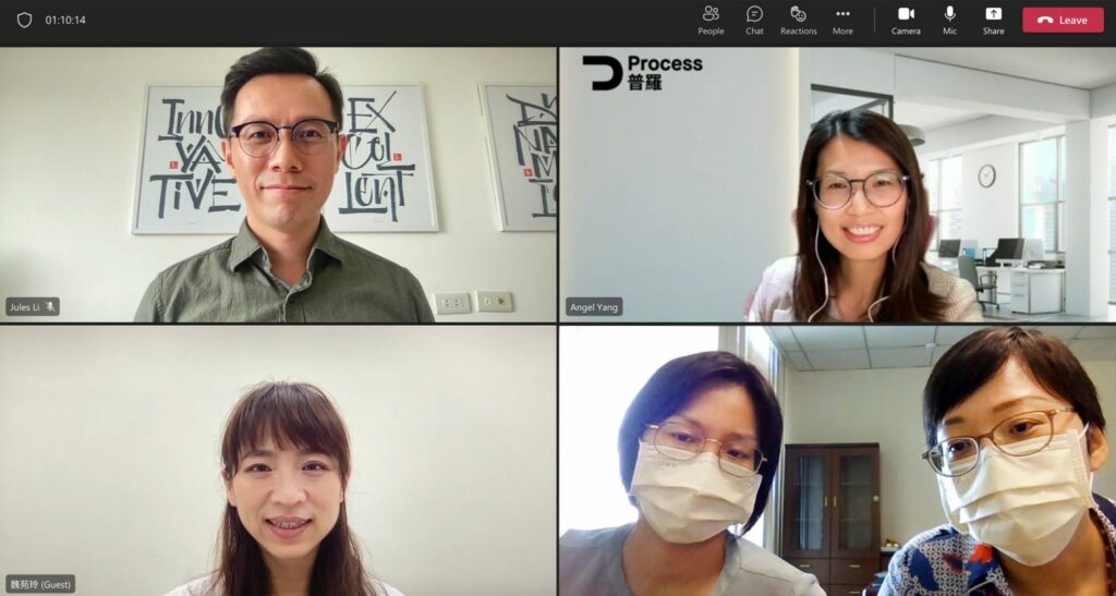 (右至左、上到下)Process普羅品牌台灣分公司榮譽顧問 李國榮、總經理 楊淑燕、採訪記者 魏玲苑、聚和國際總經理特助郭美珊以及副董事長郭美璘,專訪最後的開心大合照。