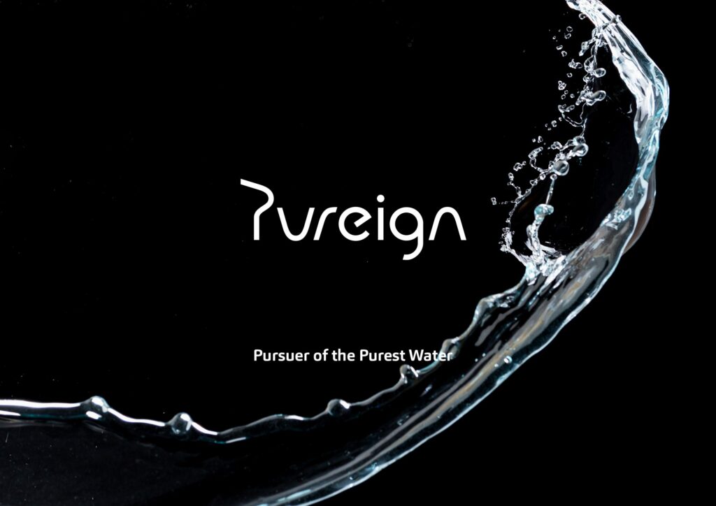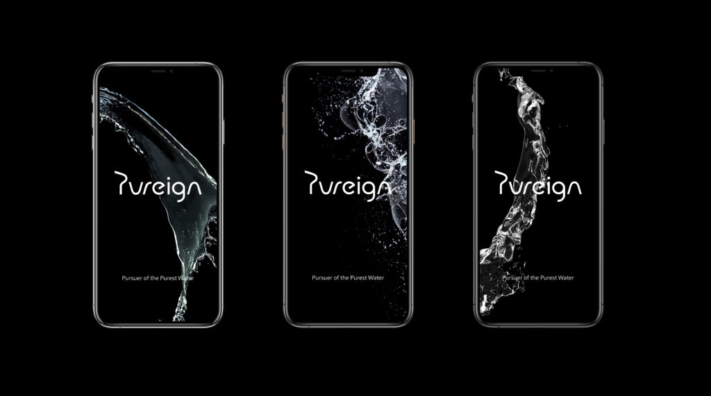 品牌識別為表現頂級高端、水源純淨的樣貌,透過簡約俐落的線條展現出 Pureign 淳銳 商標。以黑色為主的形象,能展現「水」最純粹及美麗的姿態,搭配著數位流動的線條圖形,象徵能層層過濾出乾淨的水源,完美詮釋自然與科技交融的形象,以開拓未來的前瞻思維,幫助人們獲得最純粹的生活飲用水。