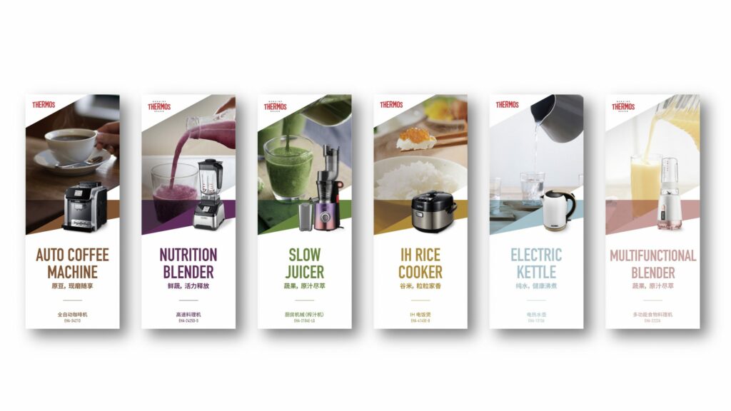 膳魔師家電系列的視覺系統進一步延伸應用在網頁視覺、印刷品、產品展示設計以及電商平台的設計;具有識別性以及系統性的視覺設計。