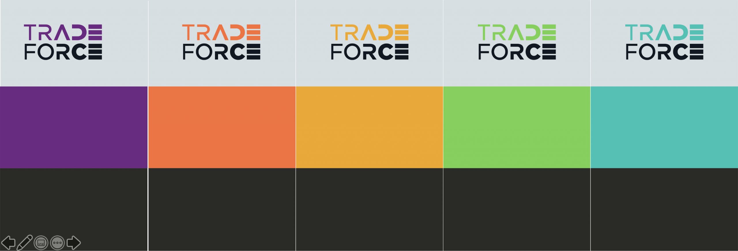 視覺上,通過對於目標群眾的訪談,並針對行業品牌進行的分析。 TRADEFORCE採取一個突破市場現狀的策略,透過不同於行業傳統形象的視覺系統,發展具有獨特性的品牌形象創造市場差異化。