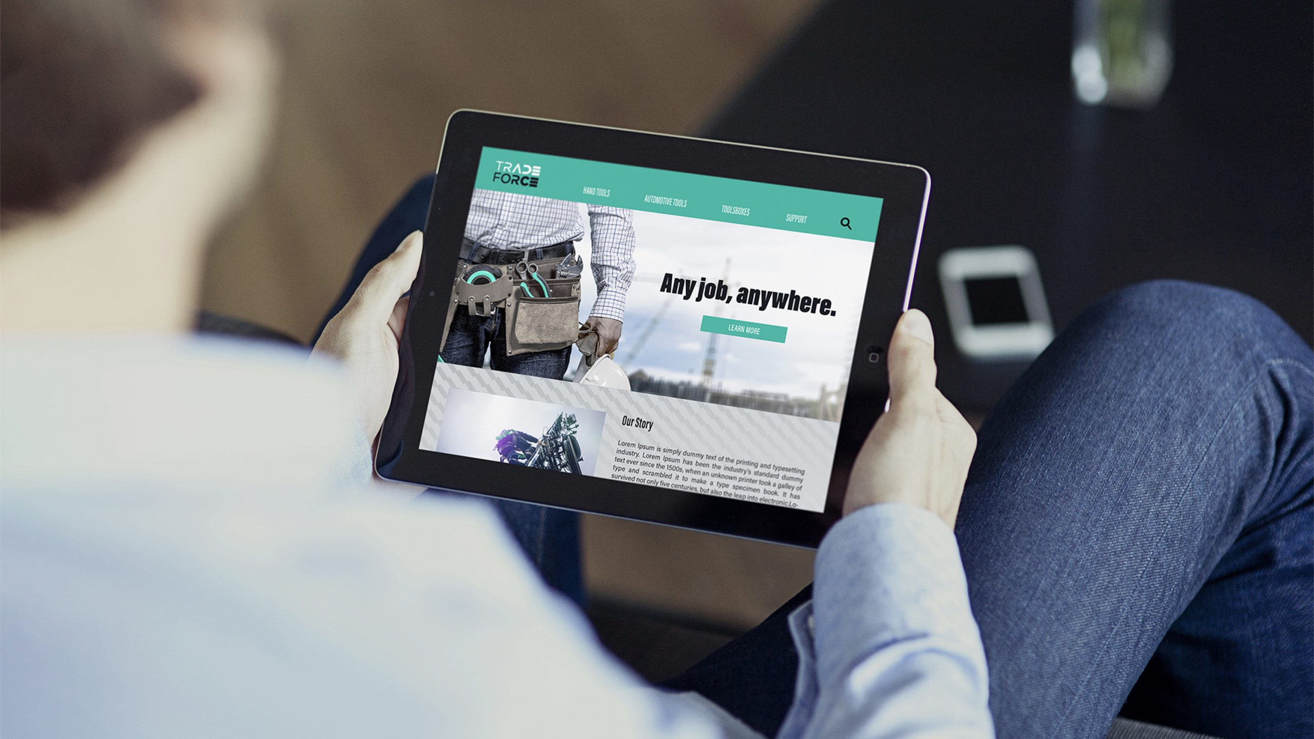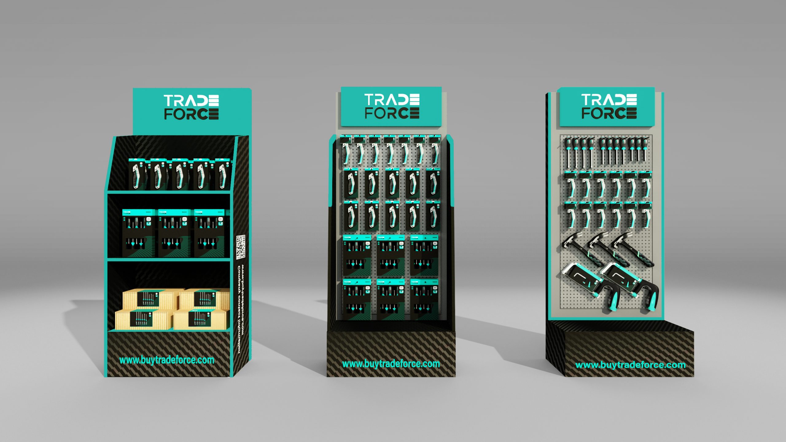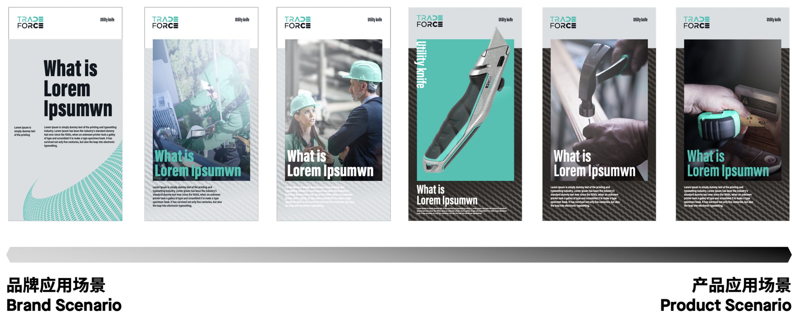為了能夠在強勢品牌環伺的競爭環境中脫穎而出,TRADEFORCE選擇了不同於產業傳統色系的清新綠色。並且透過帶有時尚科技感的圖形,營造出與產業既有刻板印象截然不同的品牌形象。擺脫五金工具給人一成不變、保守無趣的印象。在設計過程中,為凸顯出工具給予人的專業感以及功能性,以具有動態感的輔助圖形傳遞出工具符合人體工學的手感,進而描繪出品牌的品質以及使用感受。